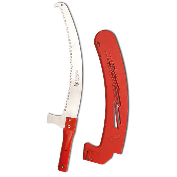 Grensåg för montering på teleskåptång. Såghuvud med böjd klinga för montering på teleskopstång med klinga av polerat och hårdförkromat japanskt samurai-svärdsstål med hög kolhalt och trekantade precisionsslipade sågtänder. För säker förvaring medföljer fodral i ABS-plast.