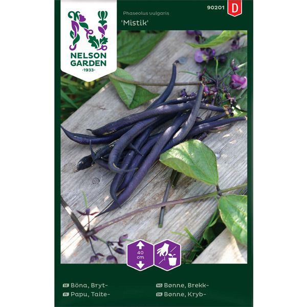 Böna med lila baljor som utvecklas ovanför bladverket och därför är lättplockade. Äts kokta. Kan med fördel frysas, lätt förvällda. Trivs bäst i väldränerad, mullrik och fuktighetshållande jord i skyddat läge. Vattna rikligt. Skörda efter hand, låt inte baljorna bli för stora, ca 14 cm är lagom.