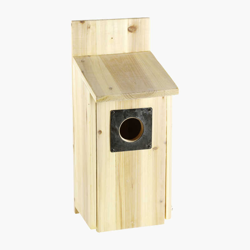 Fågelholk för större fåglar. Hål med diameter 50 mm.