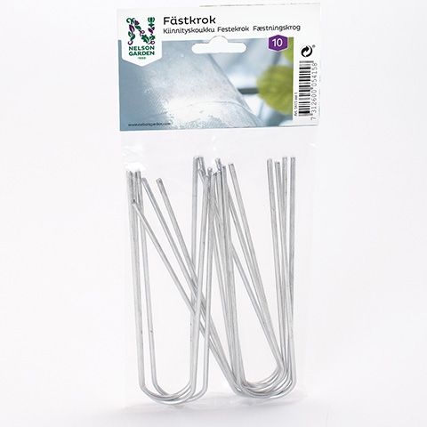 Fungerar bra till att fästa marktäckväv, fiberduk eller barkduk samt gårdsgranens ring. Sticks genom materialet ner i jorden.