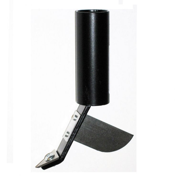 Med två skär. Det tunna används till smala fogar och för att luckra materialet i breda fogar. Det bredare drar upp ogräset och tar bort t.ex. mossa.