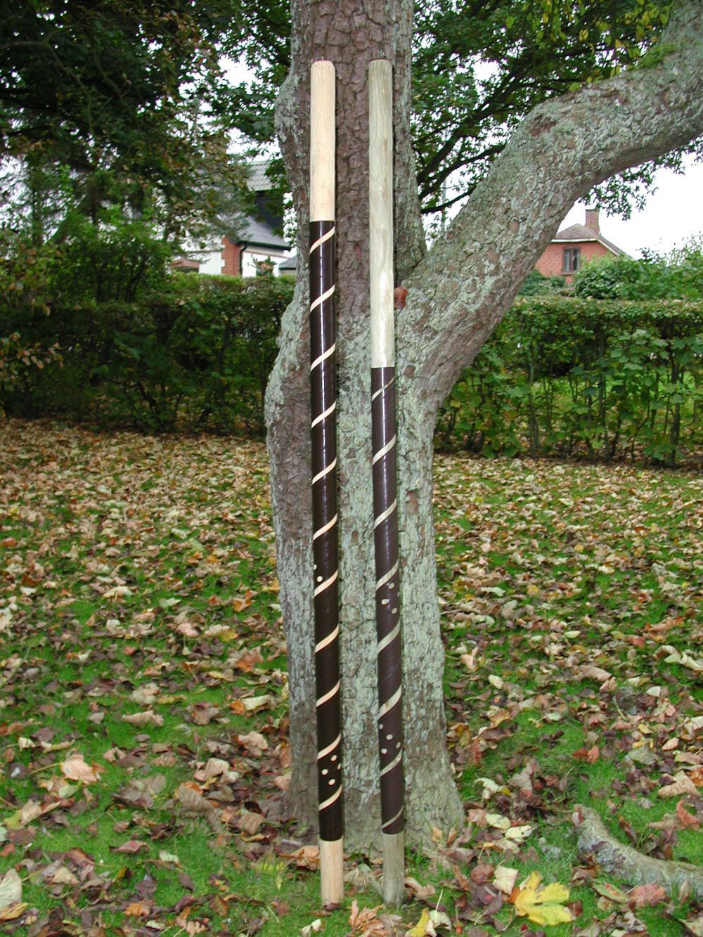 Förpackning om 5 st plastspiraler i brunt eller mörkgrön, 100 cm höga. -