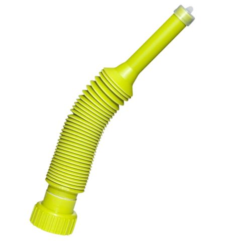 Bränsleresistent, flexibel tätad bensinpip som passar 5-litersdunkar. Pipen är utrustad med lock för skydd mot smuts och damm.