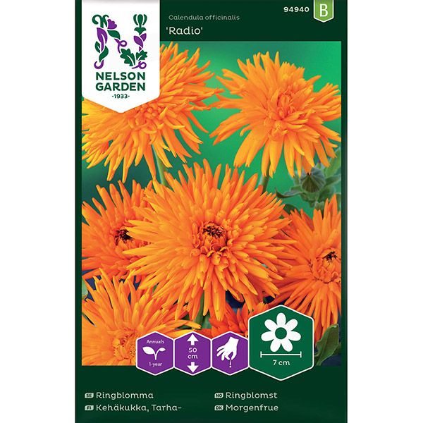 Blomvillig, lättodlad och välbekant. Sorten har fyllda blommor med långa, smala kronblad i rent orange. Vacker att odla i rabatt och grönsaksland. Fin till snitt. Frösår sig gärna om blommorna får vissna och fröna får sitta kvar. De färgstarka blombladen går att äta, dekorativa i sallader. Trivs i näringsrik och väldränerad jord, men är anspråkslös. Vattna vid torka. Klipp bort vissna blommor efterhand, så förlängs blomperioden. Plantan kan brukas ner som gröngödsling på hösten.