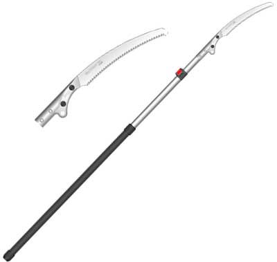 En lätt och smidig stångsåg med teleskopiskt aluminiumskaft i oval profil. Låsning med plastspännen och tryckknappar.