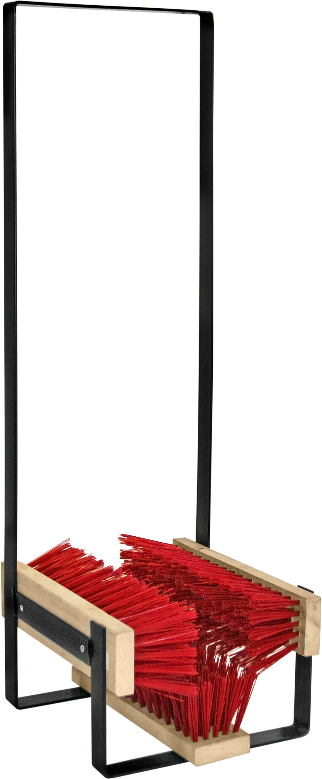 Färdigmonterad skoskrapa med tre borstar och galvaniserad stålställning som gör den stabil när man ska rengöra skor och stövlar.